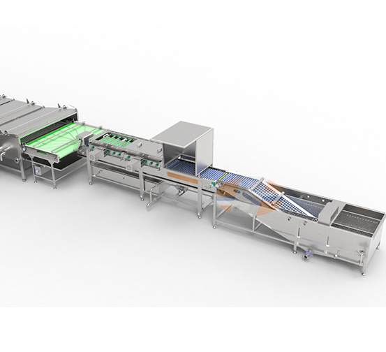 3. Brush cleaning: After being sprayed with clean water, the eggs enter the brush cleaning process. The eggs must rotate while being conveyed, and the brush is used to brush the eggs in all directions.