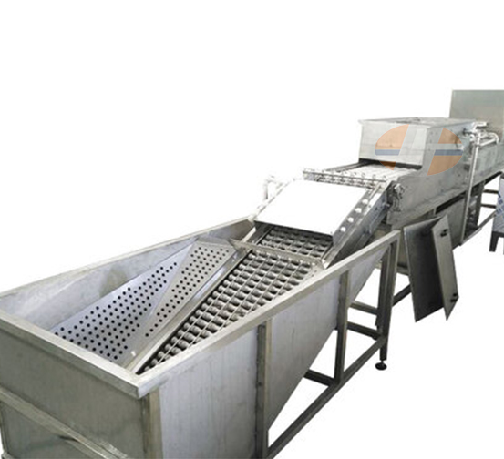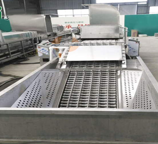 1. Egg loading in water: Pour the whole basket of eggs into the sink, and the eggs are automatically transported by the conveyor chain. The position of the eggs is automatically adjusted during the transportation process.